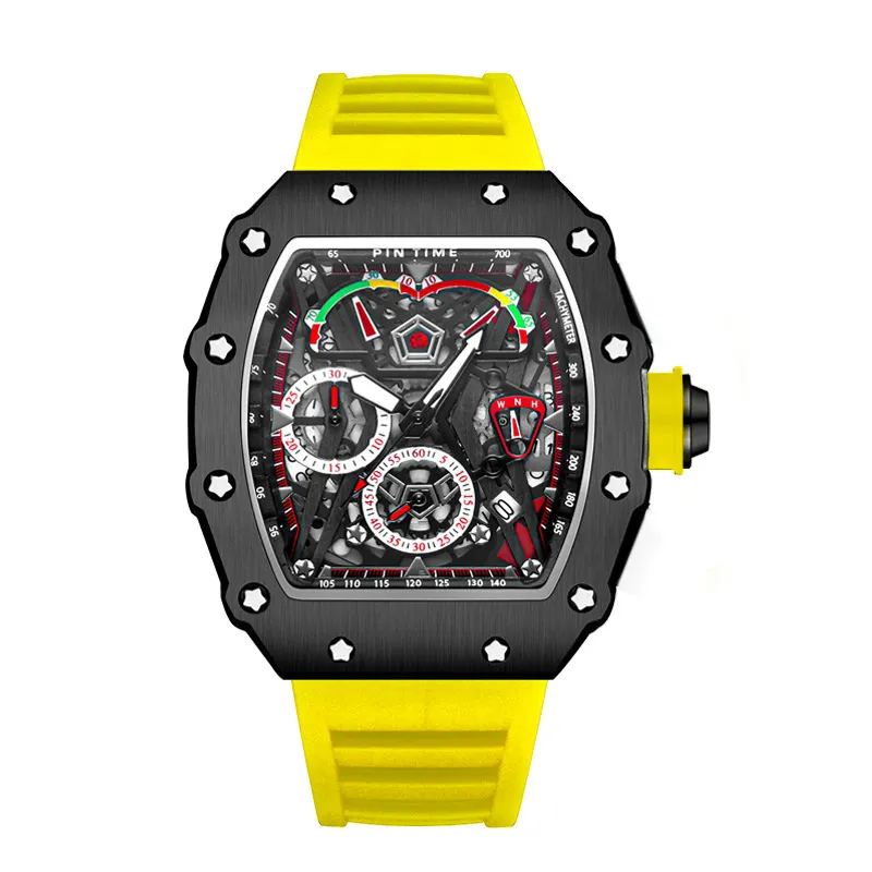 Imported:No-Model:,-Logo printing: Yes-Special Features: Others-Display Type: Pointer-Suitable for: Male-Style: Casual-Patent Source: No-Waterproof: Yes-Water resistance: 10m-Movement Type: Quartz-Movement Country: ,-Movement Model:,-Thickness: 17mm-Dial diameter: 41mm-Crown Type: ,-Case Back Type: Normal-Mirror Material: Mineral tempered glass-Clasp Style: Pin Clasp-Clasp Material: Stainless Steel-Strap Material: Rubber-Dial shape: tonneau-shaped-Case Material: Stainless Steel-Place of Origin (Domestic): Guangdong Province-Packing Specifications:,-Item No.:,-After-sales service: store warranty-Color: Black, Red, Orange, Blue, Yellow-Size: Gift box, unboxed-Release Year/Season: Spring 2023 -